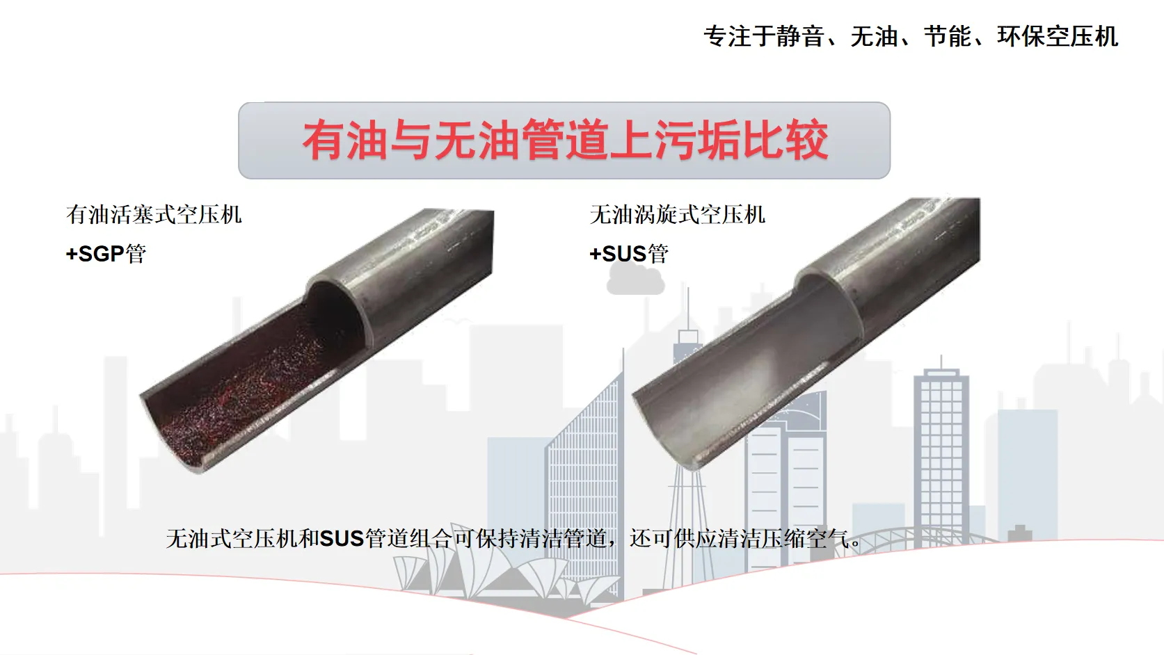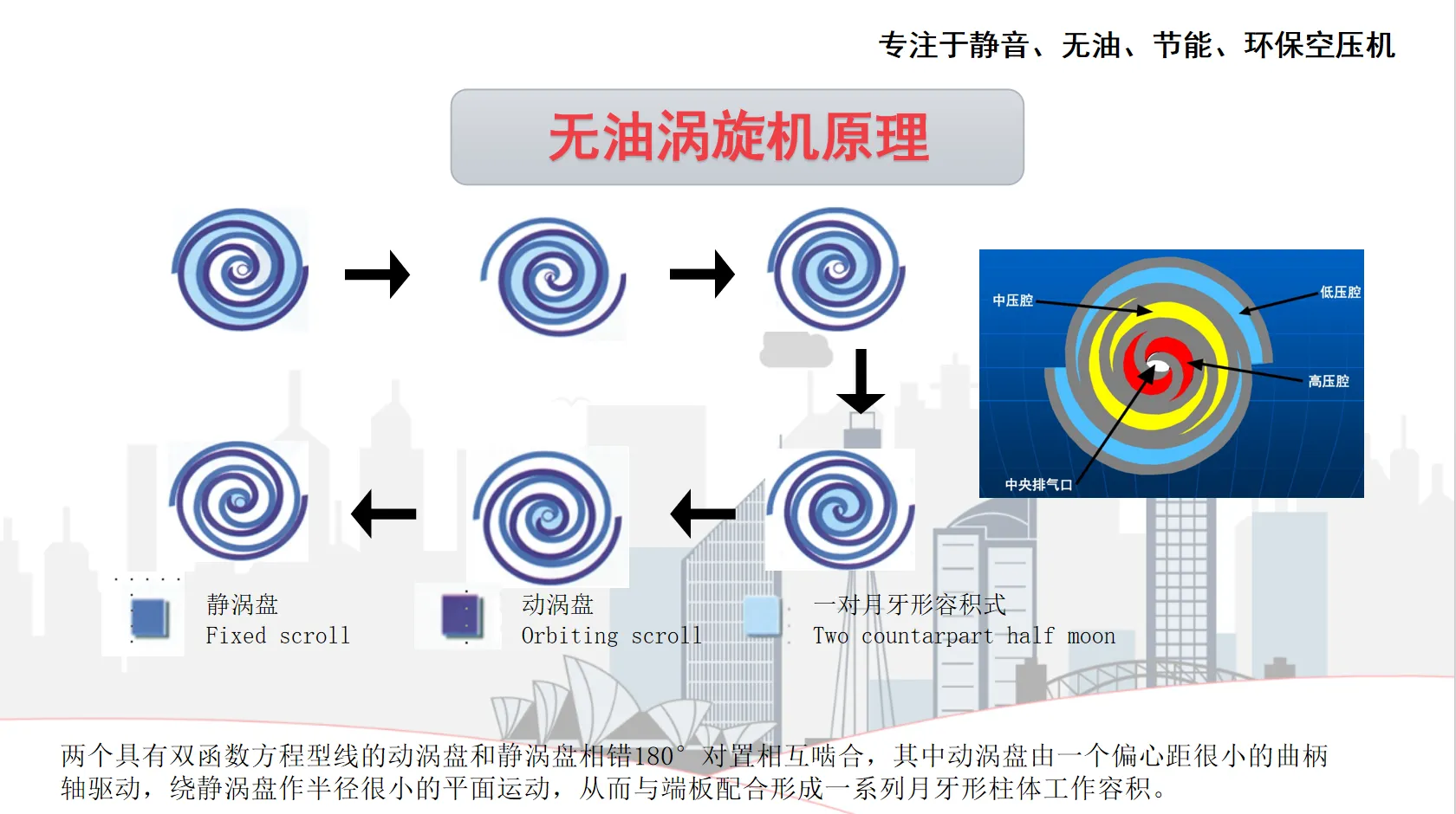 无油螺杆空压机 干式无油螺杆空压机 无油涡旋空压机 静音无油空压机 储气罐 干燥机 过滤器 不锈钢节能管道